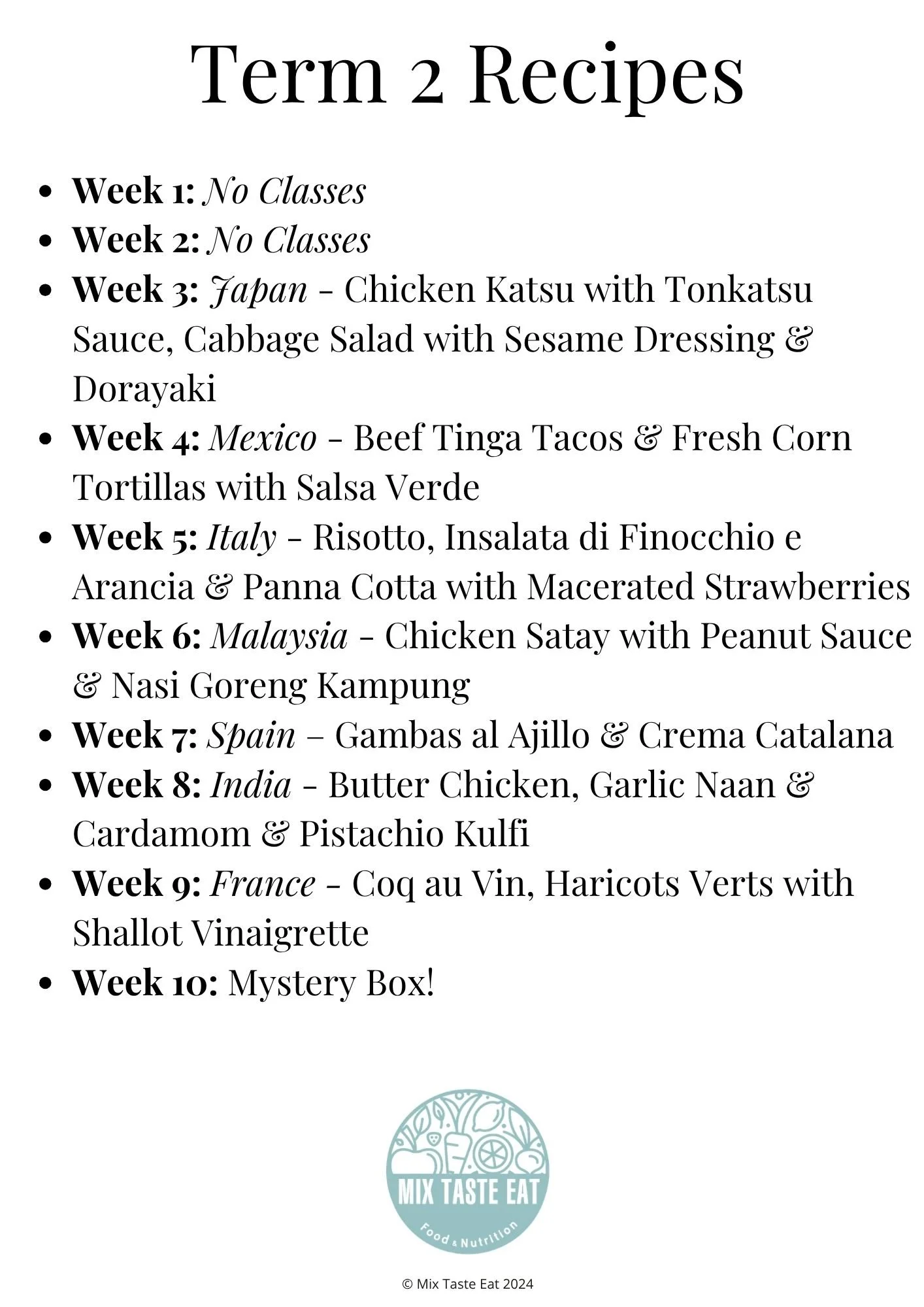 Please note, we are now offering two classes in 2026 - a beginner and an intermediate class. If your student has previously attended MTE and you’re unsure which class they would belong to, please reach out via email (hello@mixtasteeat.com). Generally, if they’re younger than 11 and/or only have attended one term previously they would be in the beginner classes as our intermediate classes tend to run at a faster pace with more complex recipes.